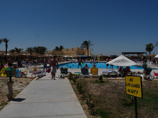 Par contre, j'ai failli jeter le vieux pisciniste tunisien à la flotte. Les transats sont réservés de bon heure pour la clientèle russe et anglaise, celles qui paient quoi. Alors obligé de se lever aux aurores et encore, mes serviettes ont disparu plusieurs fois!